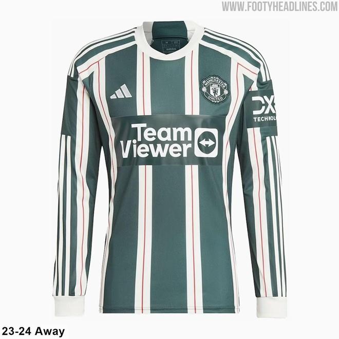 阿迪达斯为曼联设计的26-27赛季第三球衣以米白色为主色调,搭配深绿色和酒红色,虽然配色与23-24赛季客场球衣非常相似,但设计风格却截然不同。
